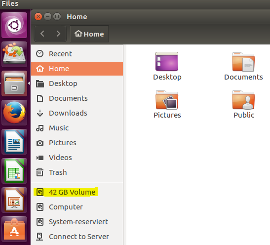 - Nun irgendeine Live-CD bzw. USB-Stick nehmen und ein Linux booten. Das muss nicht Ubuntu sein. Bei mir war es Ubuntu, weil ich es gerade zur Hand hatte.