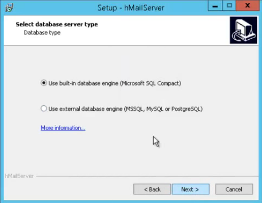 Die Installation eines hMailserver gestaltet sich kinderleicht. Nach dem Download der hMailServer-version.exe kann diese ganz einfach gestartet werden. In der folgenden Installationroutine wird dann nach dem Installationspfad, Installationsart gefragt, sowie die Datenbank (MySQL, MSSQL etc).
